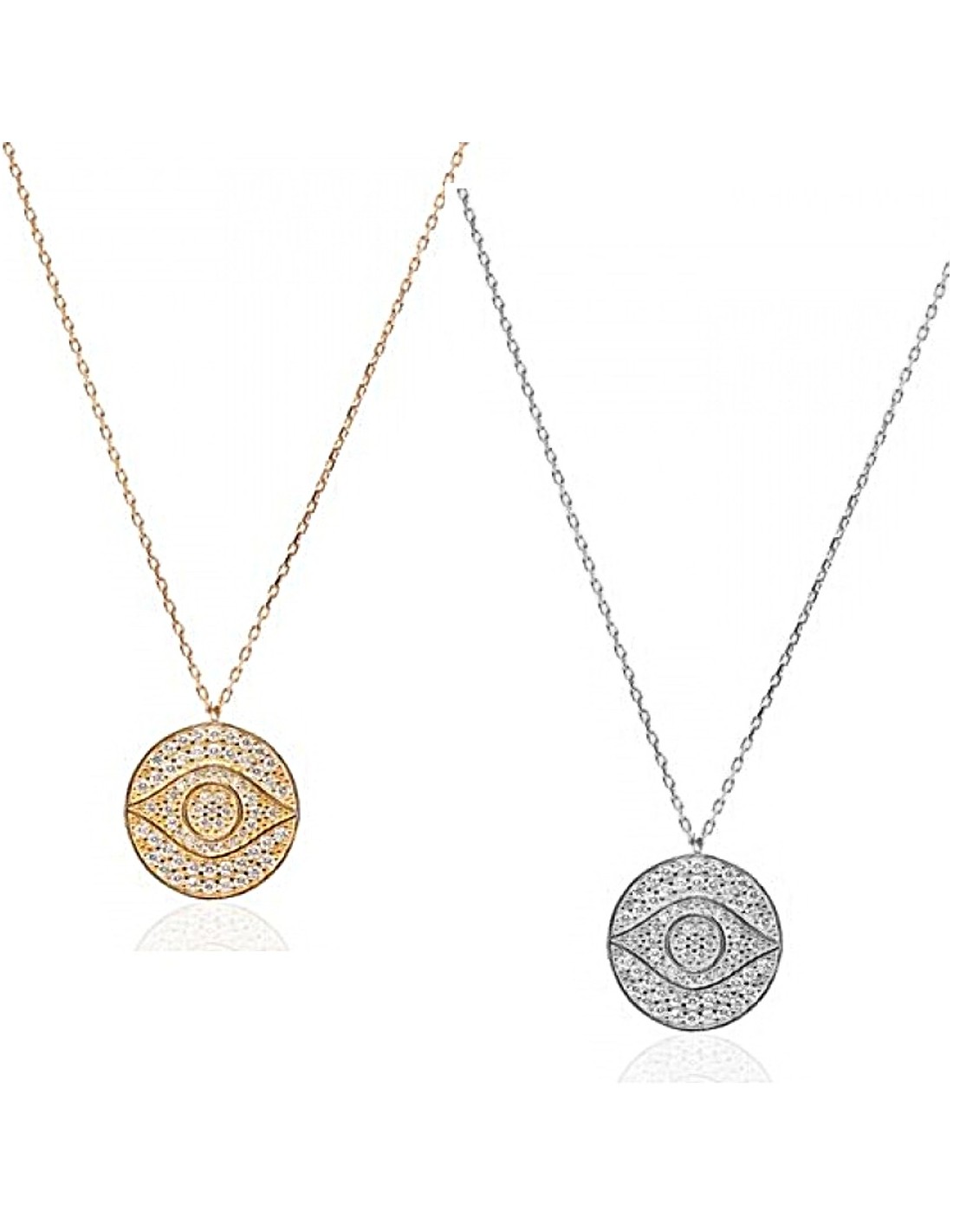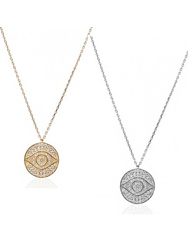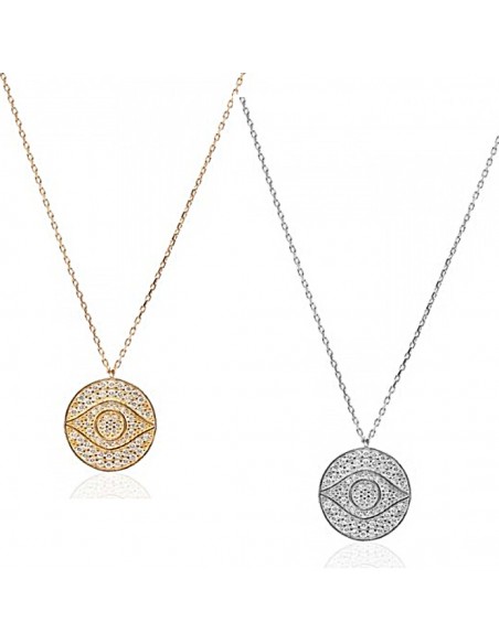 Cubic zirconia evil eye coin necklace