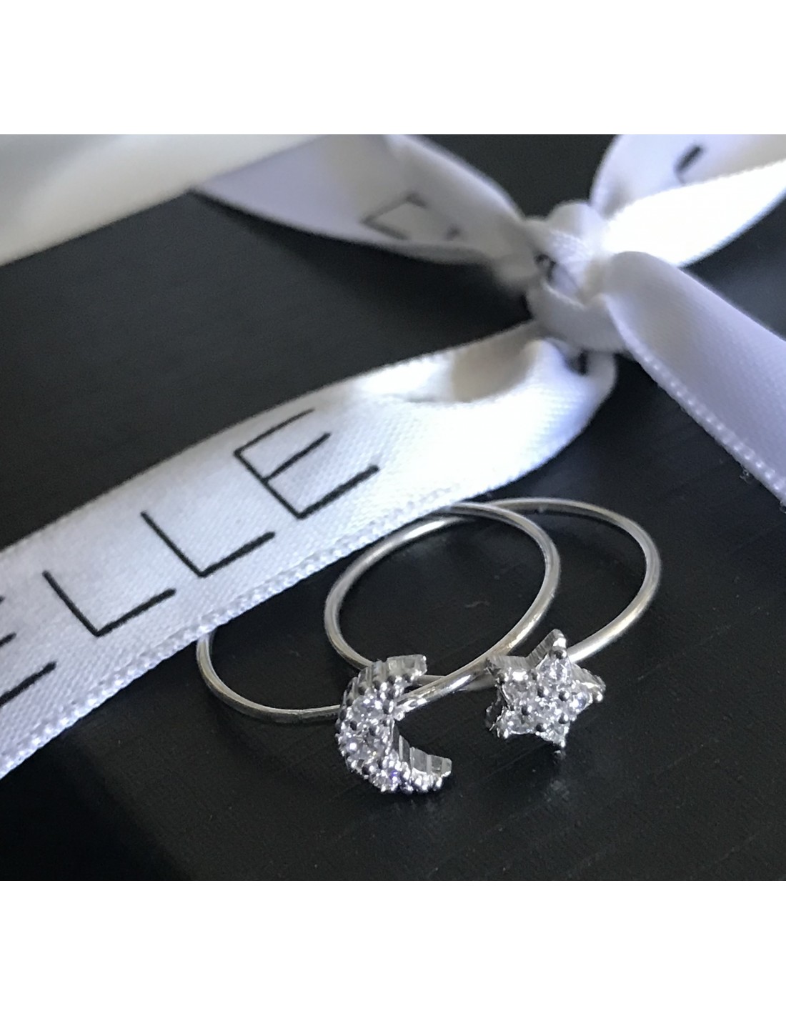 Moon ring with cubic zirconia